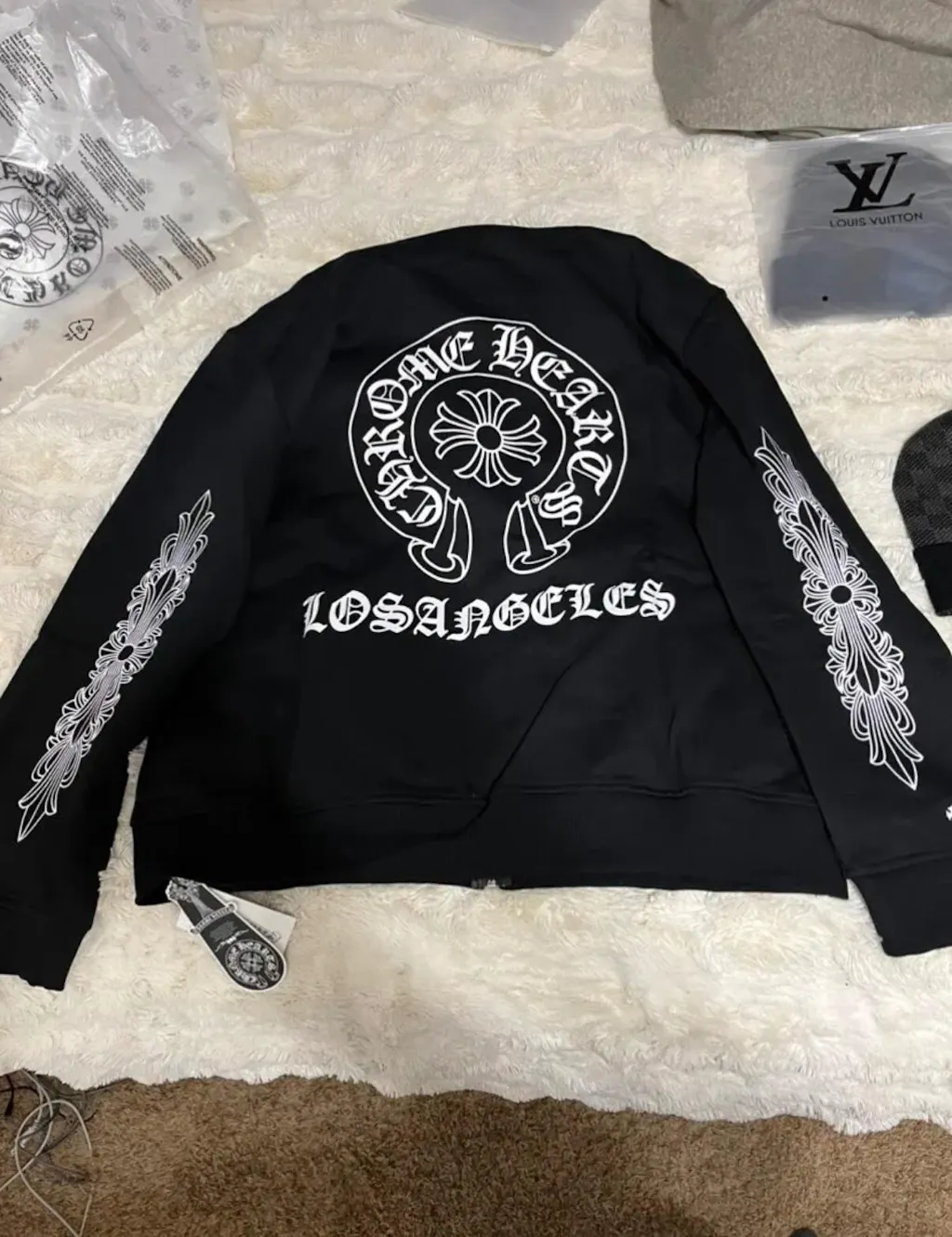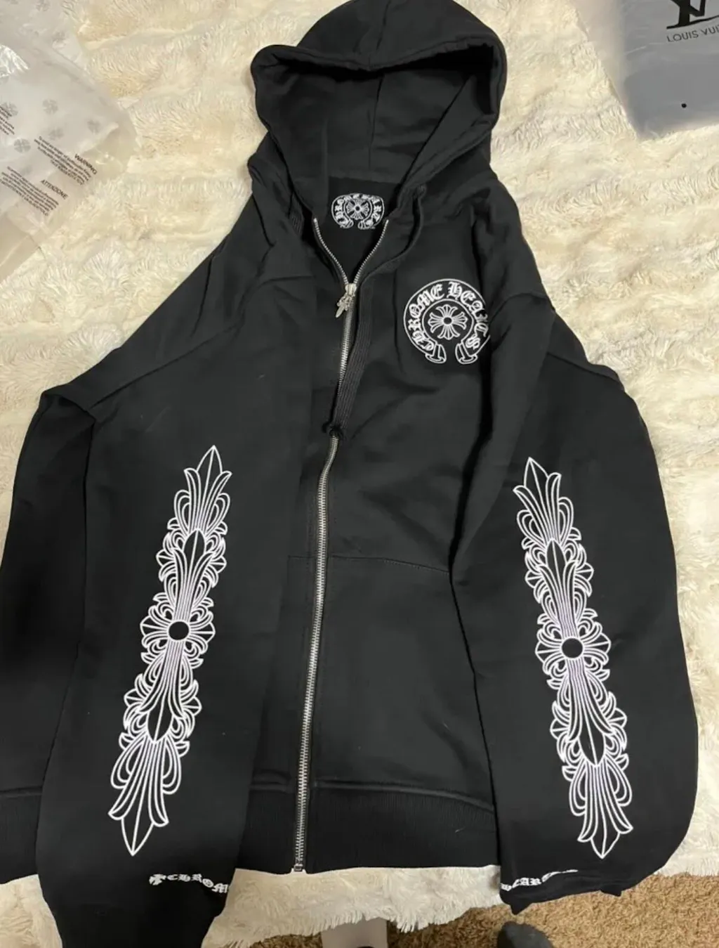Chrome Hearts Horse Shoe Floral Hoodie Black