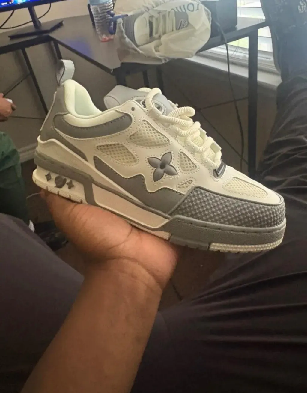 Louis Vuitton Leather lace up Fashionable Board Shoes White